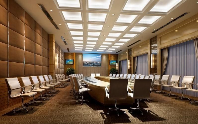 ?會議照明燈光采用雙模式控制方式,可通過觸屏控制,也可通過墻上面板控制。