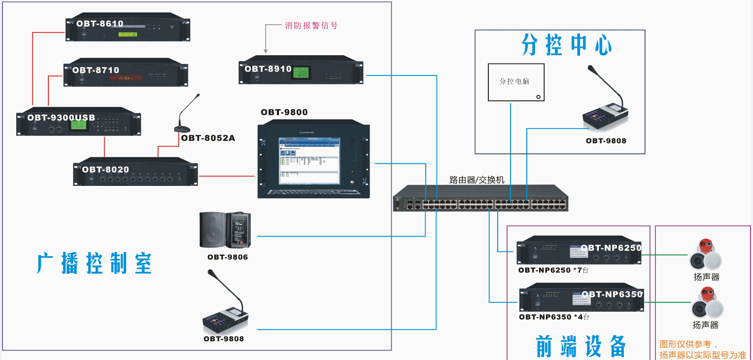 3、公共廣播系統至少配置有三套節目,可同時滿足多個區域同時播放不同的節目需求;